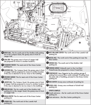 Every member of the faculty and staff should read and understand the Emergency Response and Recovery Plan, localized department emergency plans, and familiarize themselves with campus emergency procedures and building evacuation routes. Employees should be prepared to assess situations quickly and thoroughly, and use common sense in determining a course of action. They should follow emergency procedures to report fire or other emergencies that require immediate attention, and evacuate to the evacuation assembly areas in an orderly manner. Students see faculty members as leaders, so faculty should be prepared to direct students to assembly areas in the event of an emergency.