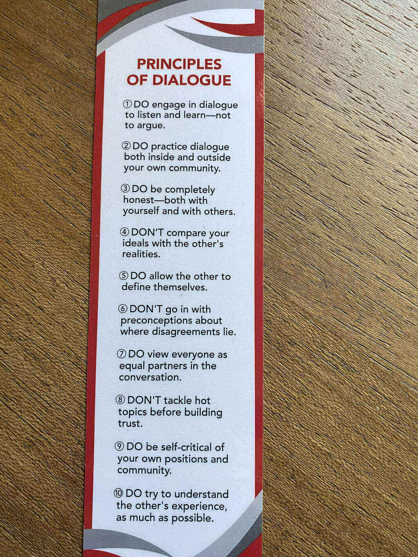 We ground our work in the Principles of Dialogue, created by the Interfaith Cooperation Committee in 2019.
